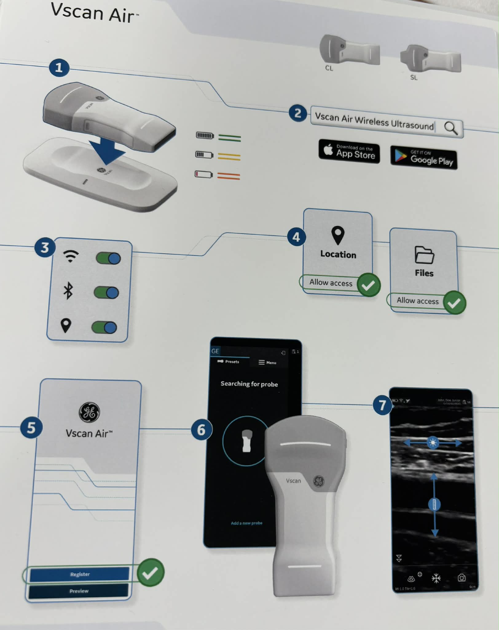 A Vscan Air készülék Bluetooth-kapcsolaton keresztül párosítható Android- vagy iOS-alapú okoseszközökkel. A modern ultrahang segítségével az ízületek állapotáról készülnek felvételek, amelyek valós időben megjeleníthetők az ingyenes Vscan Air alkalmazásban.